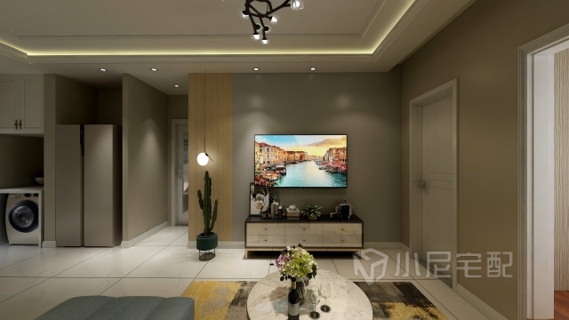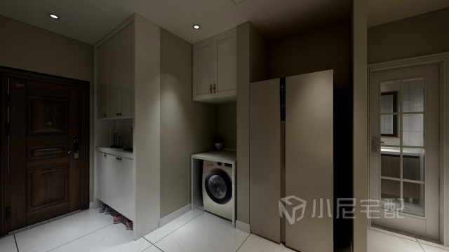 門廳放置洗衣機(jī)和冰箱,多出的空間加以合理利用??臻g布局更簡潔