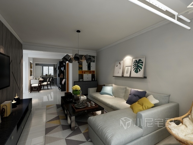客廳灰白色的搭配,簡(jiǎn)潔大氣。