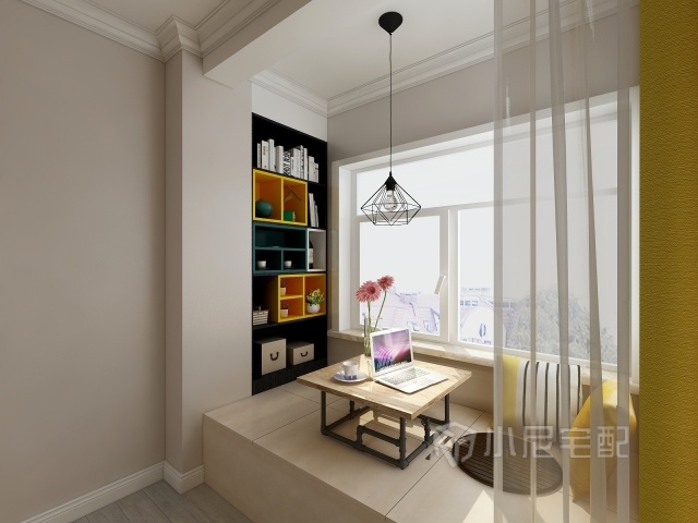 書房空間是在陽(yáng)臺(tái)上隔出來的。滿足一個(gè)愛讀書上的人的需要