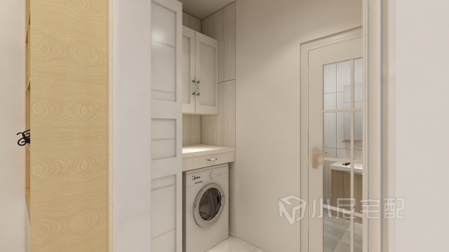 衛(wèi)生間,為了空間最大化利用,衛(wèi)生間外側(cè)做整體洗衣機(jī)柜