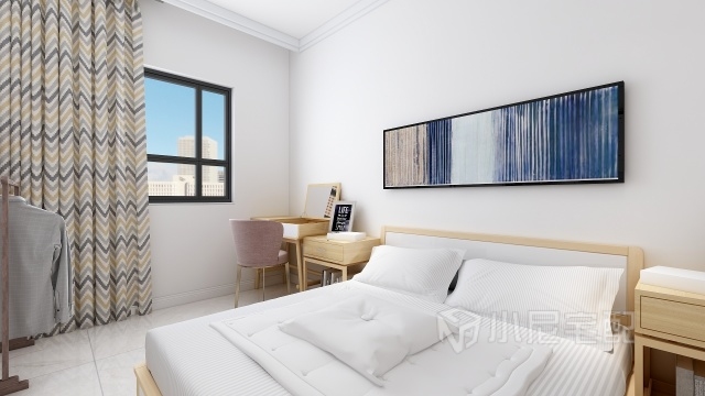 次臥,淺木色的宜家風(fēng),清新淡雅