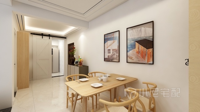 餐廳實(shí)木色餐桌,配合柔和的陽(yáng)光,空間顯得更加柔和