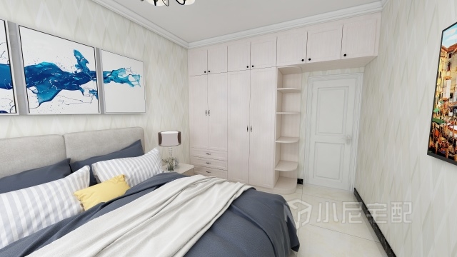 次臥 男性青年房 選用的平開式衣柜 平開式衣柜門的有點就是衣柜門可以完全的全部打開柜子 充分透風防潮