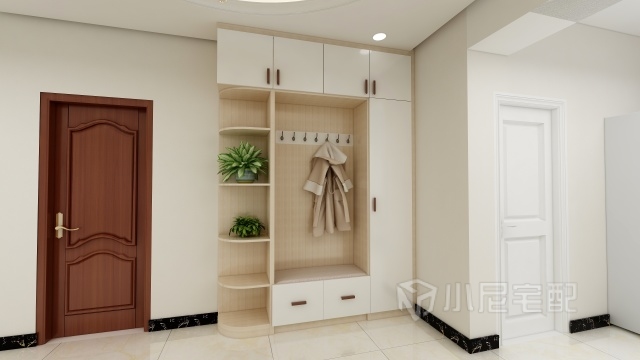 門廳鞋柜 采用的撞色效果 換鞋凳掛衣鉤還有封閉式鞋柜 把看起來不整齊的鞋子都藏起來了哦