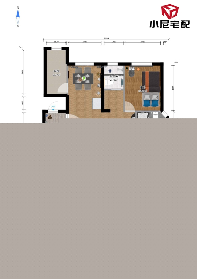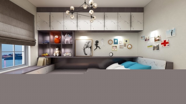 次臥辦公,休息,收納于一室,讓每一寸空間物盡其用。單區(qū)間的圍合空間,采用立體式環(huán)抱包圍,在風水上叫藏風聚氣