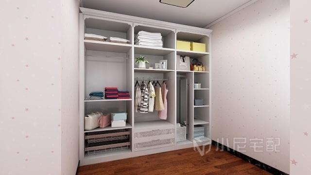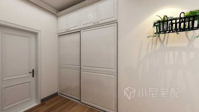 小平米的次臥配上封頂?shù)某ㄩ_(kāi)衣柜真的小空間大大利用,整體顏色搭配也檔次格調(diào)3提升了
