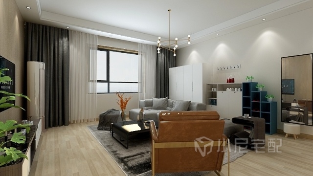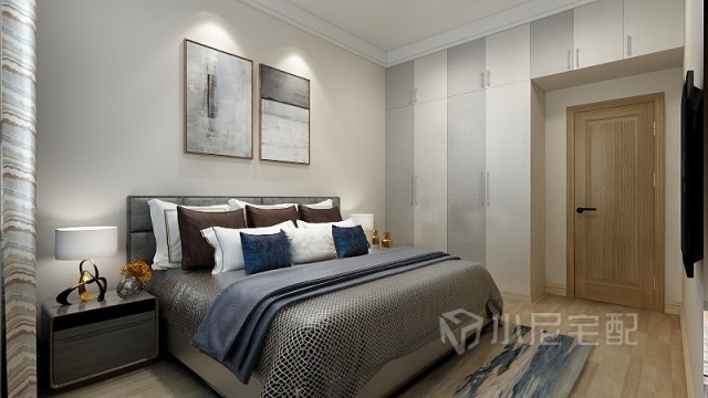 深淺布紋色的柜門的搭配給主臥室的簡潔中更加增添了一絲活力。