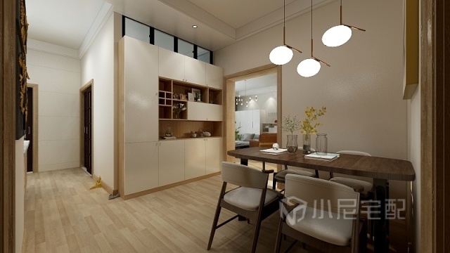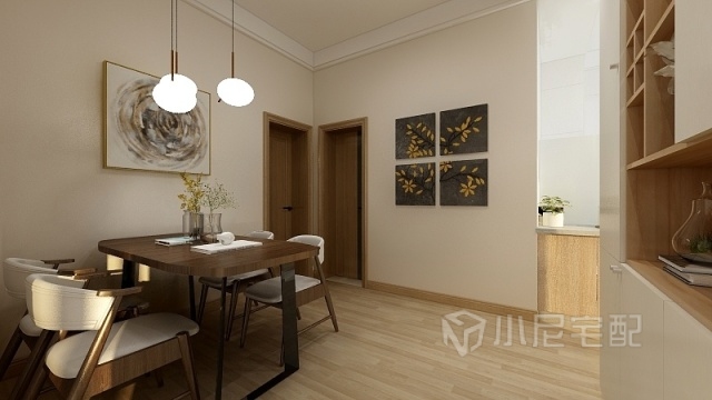 餐廳以暖色作為背景色,簡潔的掛畫作為空間的點(diǎn)綴色,相互融合且相互襯托??臻g貫穿的不用刻意修飾,自然舒適是關(guān)鍵。
