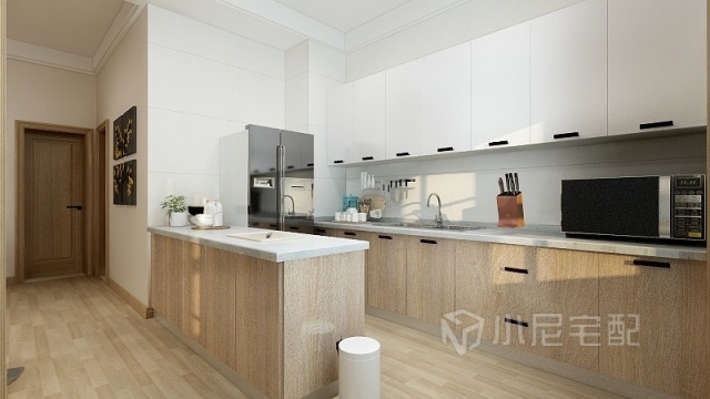 廚房的設(shè)計(jì)選材和色彩搭配上,注重實(shí)用美觀與顏值并存法。柜門造型顏色及灰色臺(tái)面的搭配出經(jīng)典,精致細(xì)節(jié)體現(xiàn)到每個(gè)五金配件,用心生活也要懂得享受方寸間。