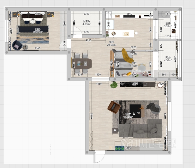 家的濃縮最大化表現(xiàn)在客廳,大尺寸深灰色的L形布藝組合沙發(fā),可以讓家人既可以舒適享受休閑時(shí)光,又可以圍坐一起輕松互動(dòng)。品質(zhì)的提升,不僅僅體現(xiàn)在家具的檔次,更是能讓家人一起共享每段時(shí)光。