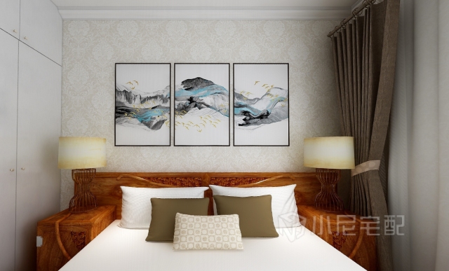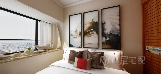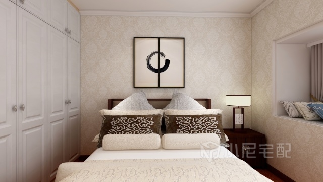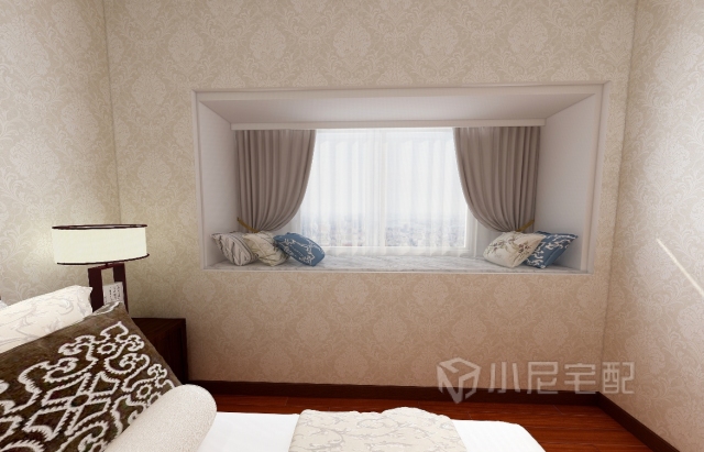 這是次臥盡量還是讓他在使用紅木色的基礎(chǔ)上亮一些。
