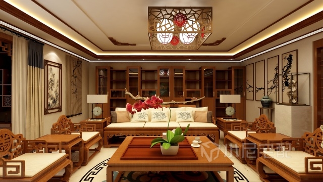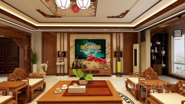 客廳比較寬敞,背景墻運(yùn)用隱形門的設(shè)計(jì)