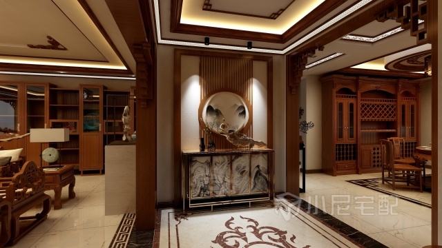 中式的門廳運(yùn)用木質(zhì)材料簡(jiǎn)單大氣