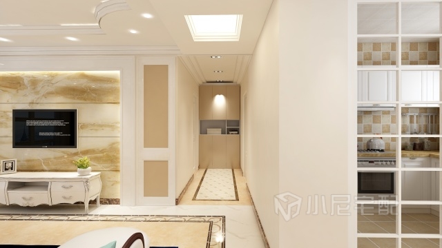 進(jìn)門處采用整體鞋柜,既方便出行,又增大儲(chǔ)物空間