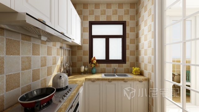 廚房方格瓷磚配合白色吸塑門板,一切顯得協(xié)調(diào)自然