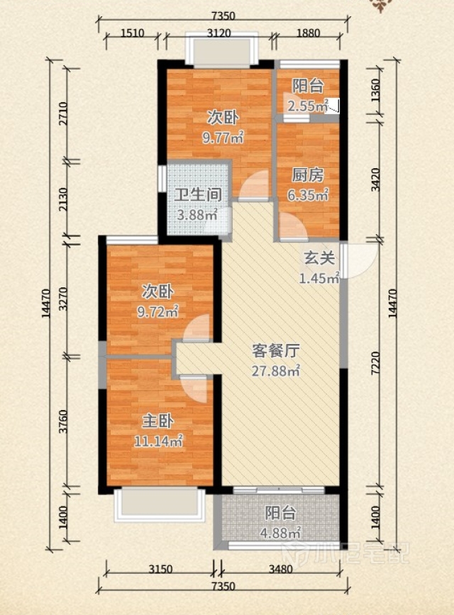 120㎡#三室兩廳一衛(wèi)#現(xiàn)代