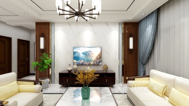 濃郁的高雅感營造出精致的空間,明暗色調(diào)和諧共處,其中點(diǎn)綴的少許亮色是點(diǎn)睛之筆。環(huán)顧四周之時(shí),軟裝的搭配相得益彰,電視背景墻大理石的輝煌感更使整個(gè)空間大放異彩,是吸睛之處。