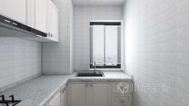 廚房白色墻磚配合白色櫥柜干凈整潔