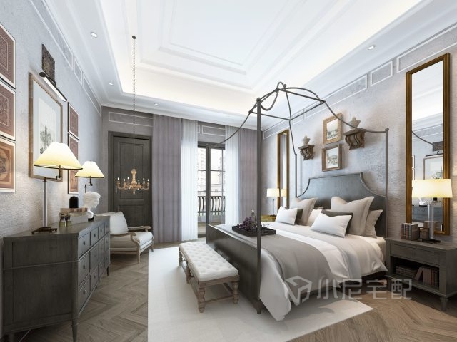 主臥,布置較為溫馨,作為主人的私密空間,主要以功能性和實用舒適為考慮的重點,臥室沒有設(shè)頂燈,使用暖色調(diào)的木地板來裝點,同時軟裝在用色上非常統(tǒng)一