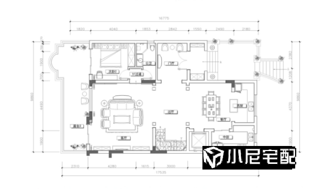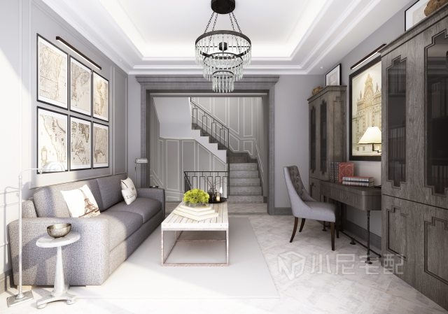 書房,在二樓轉(zhuǎn)角處,既作為二樓女兒房的起居室,也可以作為家庭交流聚會的一個場所