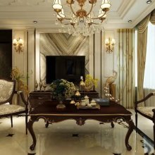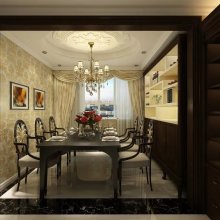 雖然房子空間不是很大但是女主人很喜歡奢華的感覺,客餐廳的設(shè)計滿足了女主人的愿望,