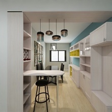 整體風(fēng)格以時尚簡約為主,由于此戶型面積不大,所以層高3300的房子柜子直接做到頂,客廳既具備了客餐廳的功能也具備了辦公的功能,更具備了休息的功能,所謂把空間用到了極致