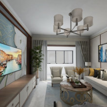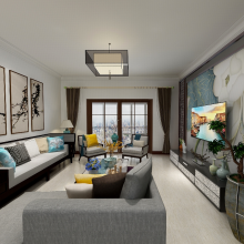 個人早起作品相當(dāng)滿意的效果,客餐廳的藍(lán)墻業(yè)主非常喜歡??筒蛷d是用3d做的燈光效果完美。