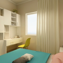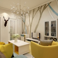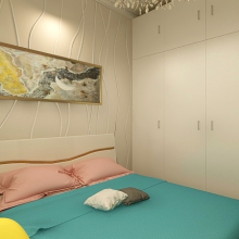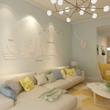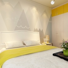 霧藍色的墻面遇見暖暖的黃色燈光,碰撞出不一般的顏色。