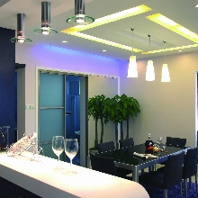 酒柜及沙發(fā)背景墻飾橢圓形蜂巢的奇特造型寓意專(zhuān)為新婚業(yè)主打造的甜蜜“愛(ài)巢”。而隱含在空間各部位的“L”造型元素是將男女主人姓氏拼音首位字母與他們的新居巧妙地結(jié)合在一起,全屋紫灰熏衣草色系綴以藝術(shù)玻璃、灰鏡等材質(zhì),營(yíng)造出對(duì)比強(qiáng)烈的時(shí)尚氣息,彰顯出業(yè)主的不凡品味。家裝家具一體價(jià):19萬(wàn)。