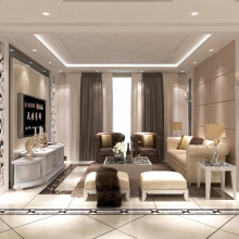 以舒適的米黃色搭配純白色營造出一種舒適明亮的居住感,簡約的造型搭配讓空間更顯開闊,現(xiàn)代與歐式混搭的整體風(fēng)格表現(xiàn)一個低調(diào)的品質(zhì)生活空間。