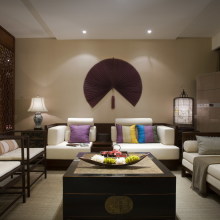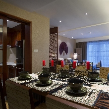設(shè)計師充分運(yùn)用了對比與融合的構(gòu)成手法,將東南亞的色彩感覺和中式古典家具飾物結(jié)合起來,使得整個室內(nèi)空間充滿了混搭的特殊質(zhì)感和自然溫暖的情調(diào)。在空間的每個角落都融合了中式、東南亞情調(diào)及裝飾藝術(shù)的設(shè)計語言,既保存著現(xiàn)代古典的風(fēng)雅氣韻和東南亞的浪漫風(fēng)格,又在古典及優(yōu)雅的空間中顯得格外有親和力。家裝家具一體價:22萬。