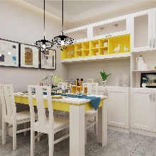 選用湖藍和明黃兩種裝飾色點綴空間,色彩感強,明亮鮮艷,適合年輕的群體。整體設(shè)計輕硬裝重軟裝,大量選用定制家具,更好的利用空間,個性化定制。