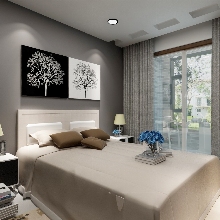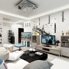 整體色調(diào)以黑白灰為主,偏后現(xiàn)代風(fēng)格,家具多為白色,時尚簡潔。