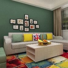 設計風格偏北歐,色彩搭配明快舒適,暗綠色和明黃色的搭配有耳目一新的感覺,同時也提升了空間的層次感