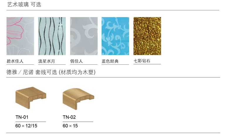 | 友情提示 | 親愛的客戶,我們的門扇標(biāo)準(zhǔn)尺寸是高度1900-2100mm,寬度700-900mm,厚度40±1mm;如有尺寸超高、超寬、超厚,請與 客服聯(lián)系 。普通玻璃加收300元,藝術(shù)玻璃900元。 |