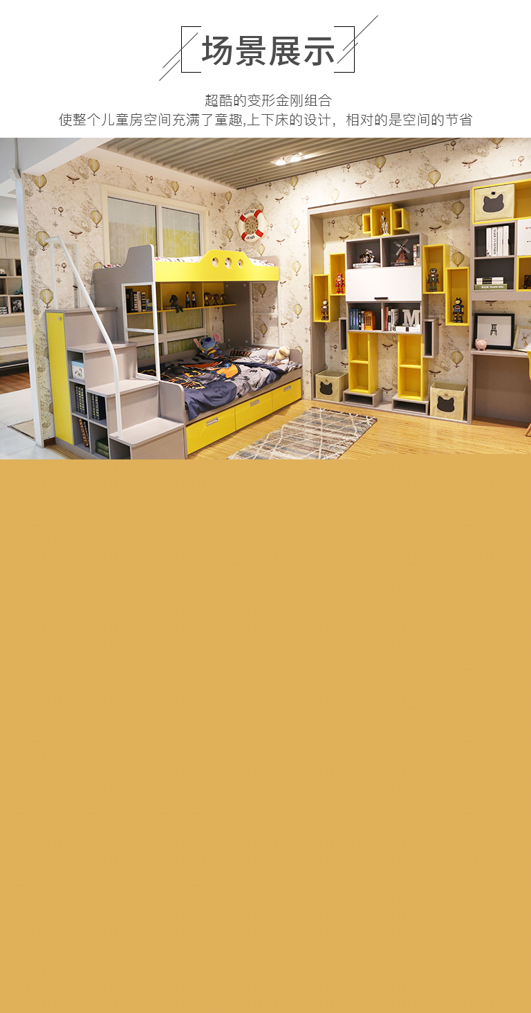 | 商品清單 | 上下床、上下梯柜、變形金剛組合柜(可定制)、轉(zhuǎn)角書桌、書椅、書架(可定制)、卡座(可定制)。 |