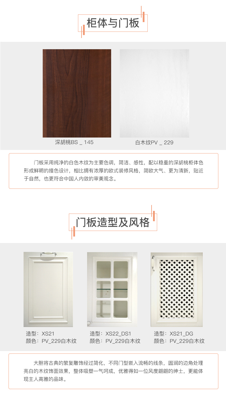 | 產(chǎn)品特點 | 強調(diào)一種優(yōu)雅、含蓄、內(nèi)斂的生活態(tài)度。在保留簡約歐式氣息的前提下將原來傳統(tǒng)的復雜雕花與現(xiàn)代元素相結(jié)合,締造出一種全新“簡約歐式風格”。 |