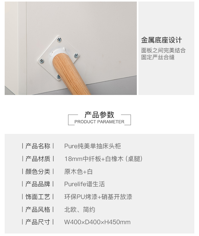 | 商品名稱 | #1050 Pure純美單抽床頭柜 |
