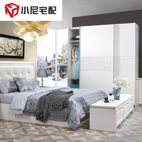 | 商品清單 | 外掛門衣柜1件、床頭柜2件、軟床1件、床墊1件、梳妝臺(tái)1件、梳妝登1件、臥房電視柜1件 |