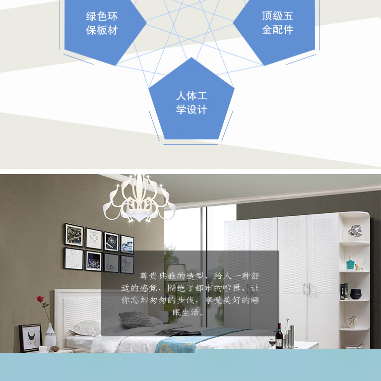 | 規(guī)格 | 衣柜:2200×580×2250mm、床頭柜:472×400×443mm、軟床:2100×1962×1116mm、床墊:1800×2000×120mm、臥房電視柜:1700×400×443mm |