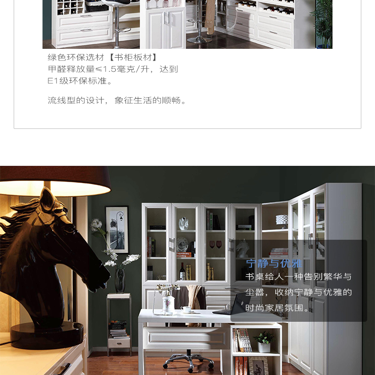 | 規(guī)格 | 組合書柜(可定制)、書桌:1400×700×760mm |