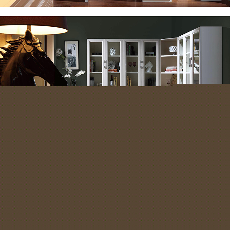 | 細(xì)節(jié)描述 | 展示主人的收藏藝術(shù)。通過局部鏤空封閉,在視覺上更具有變化性,營造出精致高雅的書房氛圍。 |