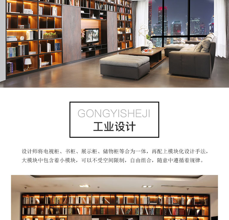 | 產(chǎn)品特點(diǎn) | 設(shè)計(jì)師將電視柜、書柜、展示柜、儲(chǔ)物柜等合為一體,再配上模塊化設(shè)計(jì)手法,大模塊中包含著小模塊,可以不受空間限制,自由組合,隨意中遵循著規(guī)律。 |